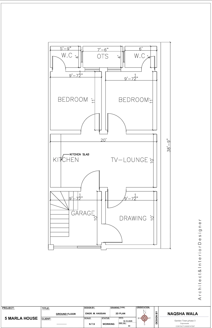 This project represents one of the very first professional architectural works completed by Nakshiwala Islamabad after launching our Islamabad office in Chaklala Scheme-3. It was a special project for us because it marked the beginning of our physical presence in the capital and also set the standard of how we handle technically sensitive and legally important house plan approvals. The client contacted us when they were in the process of transferring ownership of an already-constructed house from the first owner to a new owner. As per Islamabad development authority rules, updated architectural drawings and Naksha approval were mandatory, and that is where Nakshiwala Islamabad stepped in. The house was already built on a 20 feet × 38 feet plot, which falls under a 3 marla category. It was a 3-storey residential house located on Adiala Road, Islamabad, and since it was previously constructed without complete professional documentation, the new owner needed a full architectural, structural, and MEP drawing set to legalize, record, and approve the property. Our task was not to redesign the house, but to recreate the entire building as-built drawings with absolute accuracy so that it could be approved by the relevant authorities. We started by doing a detailed site measurement survey. Every wall, stair, room size, slab level, shaft, and opening was carefully measured. Since even a few inches of mistake can cause rejection during approval, Nakshiwala Islamabad followed a strict technical verification process. The ground floor, first floor, and second floor layouts were all recreated inside professional CAD software, converting the physical structure into precise architectural Naksha drawings. The ground floor plan was drafted showing entrance, circulation, rooms, kitchen, washrooms, stairs, and all wall thicknesses exactly as built. The first floor and second floor were also prepared in the same way, ensuring vertical alignment of walls, columns, and stairs. These floor plans are what you are seeing here, giving a clear understanding of how a 20x38 3-marla 3-storey house is arranged efficiently in a compact Islamabad plot. But our scope did not stop at floor plans. For authority approval, a complete technical drawing set was required, so Nakshiwala Islamabad prepared all of the following: • Architectural drawings • Ground floor, first floor, second floor plans • Front elevation, side elevation, and back elevation • Building sections and wall section cuts • Gate plan and site plan • MEP drawings • Electrical layout • Plumbing system • Sewerage and drainage lines • Structural & reinforcement drawings • Typical slab reinforcement • Staircase details • Beam and wall section details • Structural section cuts All these drawings were produced to meet Islamabad building control requirements so the house could be legally transferred and approved without any complications. A 20x38 feet (3 marla) plot is small, especially when it is developed into a three-storey house, so accuracy becomes extremely important. Any mistake in stairs, slab levels, or wall positions can create structural or approval issues. That is why this project highlights Nakshiwala Islamabad’s strength in as-built documentation and approval drawings, not just new house design. This type of service is very common in Islamabad, Rawalpindi, and Adiala Road areas where many houses are built by local contractors without proper drawings, and later owners need official Naksha sets for bank loans, registry transfer, CDA or RDA approval, and property legalization. Nakshiwala Islamabad provides a complete solution for that. Even though only floor plans are presented here, they are part of a much larger professional documentation set that includes every technical detail of the building. These drawings help homeowners, investors, and authorities clearly understand how the house is constructed, how utilities run, and how the structure is supported. This project proves that Nakshiwala Islamabad does not only design luxury houses, but also handles technical approval-based projects, old house documentation, and legal architectural Naksha preparation with the same level of professionalism. If you own a house in Islamabad, Adiala Road, Chaklala, or nearby areas and need 3 marla house plans, 20x38 house Naksha, or approval drawings for an already built house, Nakshiwala Islamabad can handle the complete process from site measurement to final approved drawing set.