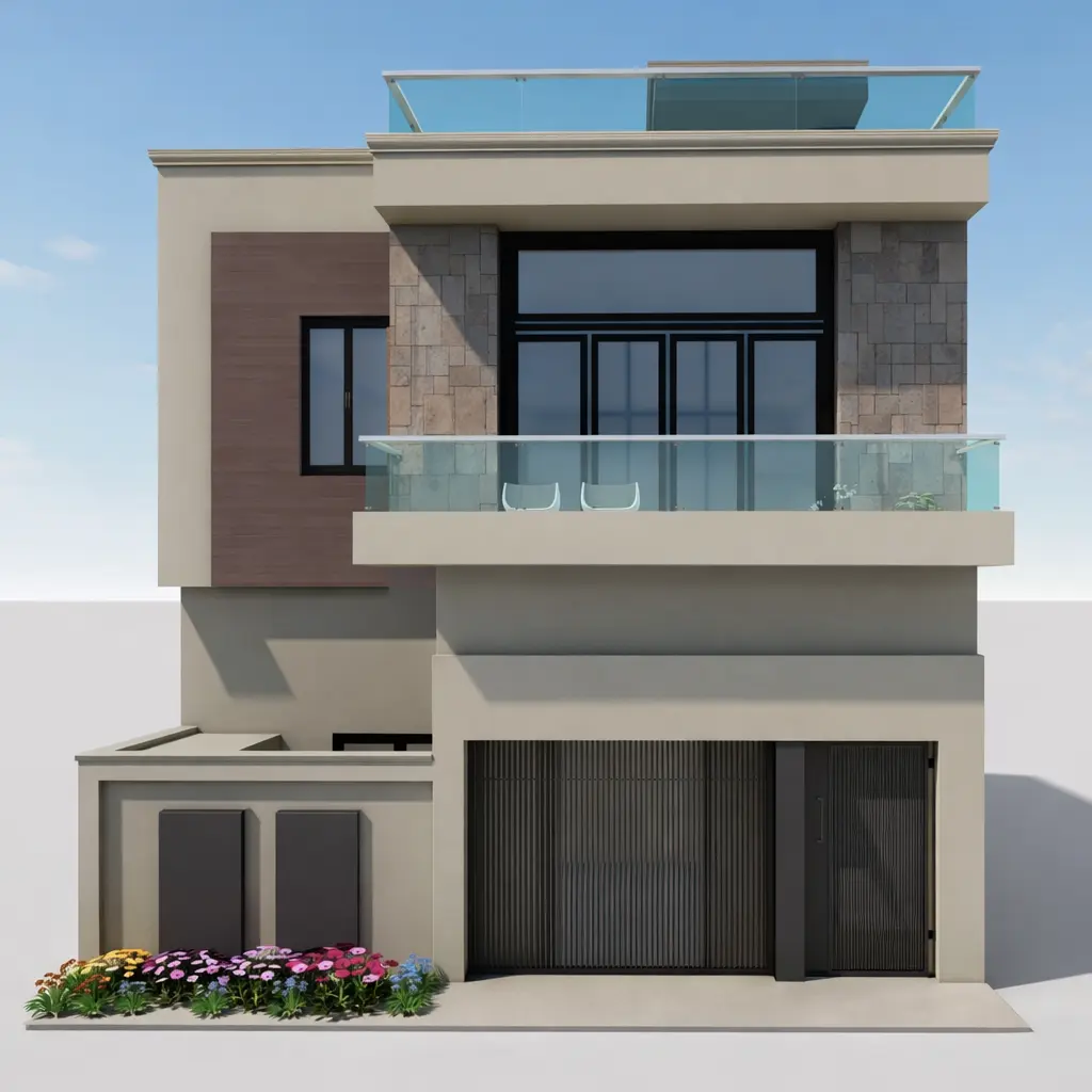 we specialize in modern house designs and renovations that transform existing homes into stylish, functional spaces. Our latest project was a 5 Marla house in Wazirabad, Gujranwala, where the client wanted to add a first floor and redesign the front elevation to give a modern exterior look. 🧱 The Challenge: Big Front, Existing Structure The house was already a single-story build, with the ground floor fully constructed. The front of the house was very wide — around 30 feet, which is unusual for a 5 Marla plot. The client’s requirements were: Design the first-floor layout Create a modern, visually appealing front elevation Include balcony and tile work for a stylish finish Make the house functional while maintaining modern aesthetics This project required careful planning because the existing structure had to be preserved, and the wide front had to be utilized efficiently. 🛠️ The Design Solution Our Naqshawala / Nakshay / Naqsha Design Studio team approached the project with a modern design vision: Designed a functional first floor with bedrooms and living spaces Created a balcony to enhance the exterior and provide outdoor space Redesigned the front elevation using modern tile work and sleek finishes Balanced modern aesthetics with practical functionality for everyday living The result is a transformed home with a stylish modern front and a functional first floor. The before-and-after renders show the significant improvement in the house’s look and layout. ✨ Why Clients Choose Naqshawala At Naqshawala, every project is handled with: Creative and modern exterior designs Efficient space planning for multi-floor houses Attention to detail in materials, tiles, and finishes Client-focused solutions that match their vision and budget Whether it’s a new house, first-floor addition, or front elevation renovation, Naqshawala / Nakshay / Naqsha Design Studio ensures the final design is beautiful, functional, and modern. 📞 Contact Us If you want to add a first floor, redesign your house exterior, or plan a modern 5 Marla house, contact us today: 📞 Call / WhatsApp: 03095747097 🌐 Website: www.naqshawala.com 📷 Instagram: instagram.com/naqshawala 📘 Facebook: facebook.com/naqshawala