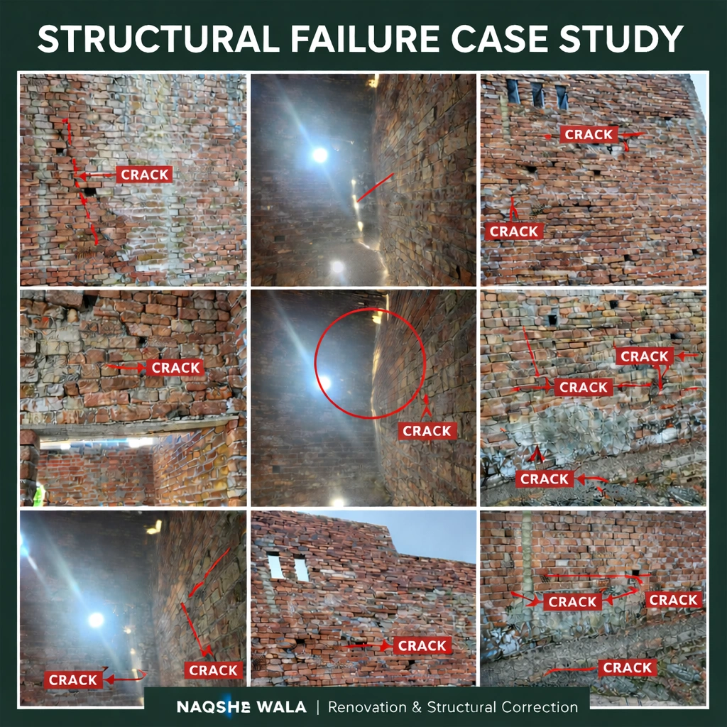 This project in Aroop, Gujranwala is a real-life example of how poor construction practices can lead to severe structural failure, and how professional intervention by Naqsha Wala can completely transform and save a building. The house belonged to Rana Jabbar, and it was a 2.5 marla residential structure that had developed dangerous cracks, wall separation, dampness issues, and major structural instability. When our team at Naqsha Wala first inspected the site, the condition of the building was extremely critical. The walls had full-depth cracks, and in some areas, there were visible gaps where light was passing through the walls, indicating complete structural failure. This was not just a cosmetic issue — it was a serious safety concern, and the building was at risk of collapse if left untreated. One of the biggest reasons behind this failure was the use of 4-inch (4.5 inch) walls as load-bearing walls, which is a very common but dangerous mistake in small residential constructions across Gujranwala, Aroop, and surrounding areas. These walls are only meant for partition purposes and cannot تحمل the load of slabs or additional structural weight. Over time, the excessive load caused the walls to crack, shift, and eventually separate. Another major issue discovered during the inspection was a 7-inch slab tilt towards one side of the building. This is an extremely serious structural defect that results in uneven load distribution. Due to this tilt, additional pressure was being applied on specific walls, accelerating the cracking process and weakening the overall structure. This kind of problem usually occurs due to poor shuttering, lack of supervision, and absence of proper leveling tools during construction. The building also lacked a proper plinth beam, which is a critical structural element that helps distribute loads evenly and tie the building together. Without a plinth beam, the foundation and walls were not properly connected, leading to uneven settlement and increased cracking. In addition, there was no proper Damp Proof Course (DPC), which caused moisture to rise through the walls. This resulted in visible damp patches, weakened mortar, and further deterioration of the brickwork. The overall construction quality was found to be poor, including: Improper mortar ratio Weak brick bonding Uneven sill levels Lack of structural alignment Poor workmanship All these issues combined created a highly unstable and unsafe structure. After a detailed assessment, Naqsha Wala implemented a complete structural rehabilitation plan rather than just surface-level repairs. The goal was not only to fix the visible cracks but to eliminate the root causes of the failure and ensure long-term durability. The first step involved structural strengthening of the building. Weak and damaged sections of the walls were carefully dismantled and reconstructed using proper techniques and materials. Special attention was given to brick bonding to ensure strong interlocking and load transfer between walls. A proper plinth beam was then introduced to stabilize the structure and distribute loads evenly across the foundation. This significantly improved the overall strength and reduced the chances of future settlement issues. The most critical part of the project was addressing the 7-inch slab tilt. Our team corrected the structural imbalance and ensured proper load distribution throughout the building. This step alone played a major role in preventing further cracking and stabilizing the walls. To solve the moisture issues, a proper DPC system was implemented. This stopped water from rising through the walls and protected the structure from long-term damp damage. Damaged plaster and affected areas were treated and repaired to restore durability. We also corrected all sill levels and alignment issues, ensuring that doors, windows, and openings were properly positioned and structurally safe. This not only improved the strength of the building but also enhanced its functionality and appearance. By the end of the project, the transformation was significant. The building, which was once at risk of collapse, became structurally stable, safe, and long-lasting. All major cracks were resolved, load distribution was corrected, and the overall integrity of the house was restored. This project highlights a very important lesson for homeowners in Gujranwala, Aroop, DHA, Bahria Town, and nearby areas — construction should never be done without proper planning and professional guidance. Small mistakes like using 4-inch walls, ignoring plinth beams, or poor slab casting can lead to major structural failures and expensive repairs. At Naqsha Wala, we specialize in: House design (naksha) Structural renovation Crack repair solutions Damp proofing Grey structure correction Interior and exterior design We ensure that every project is handled with professional expertise, proper engineering principles, and attention to detail. If you are facing issues like wall cracks, dampness, structural weakness, or poor construction, it is important to act early. Delaying repairs can increase damage and cost. Our team provides complete inspection, consultation, and renovation services tailored to your needs. This case study of Rana Jabbar’s house in Aroop Gujranwala is a strong example of how expert intervention can save a building and restore its strength. Whether you are planning a new house or need to fix an existing one, choosing the right professionals can make all the difference. For expert architectural and renovation services in Gujranwala and surrounding areas, contact Naqsha Wala today and ensure your home is built or repaired the right way.