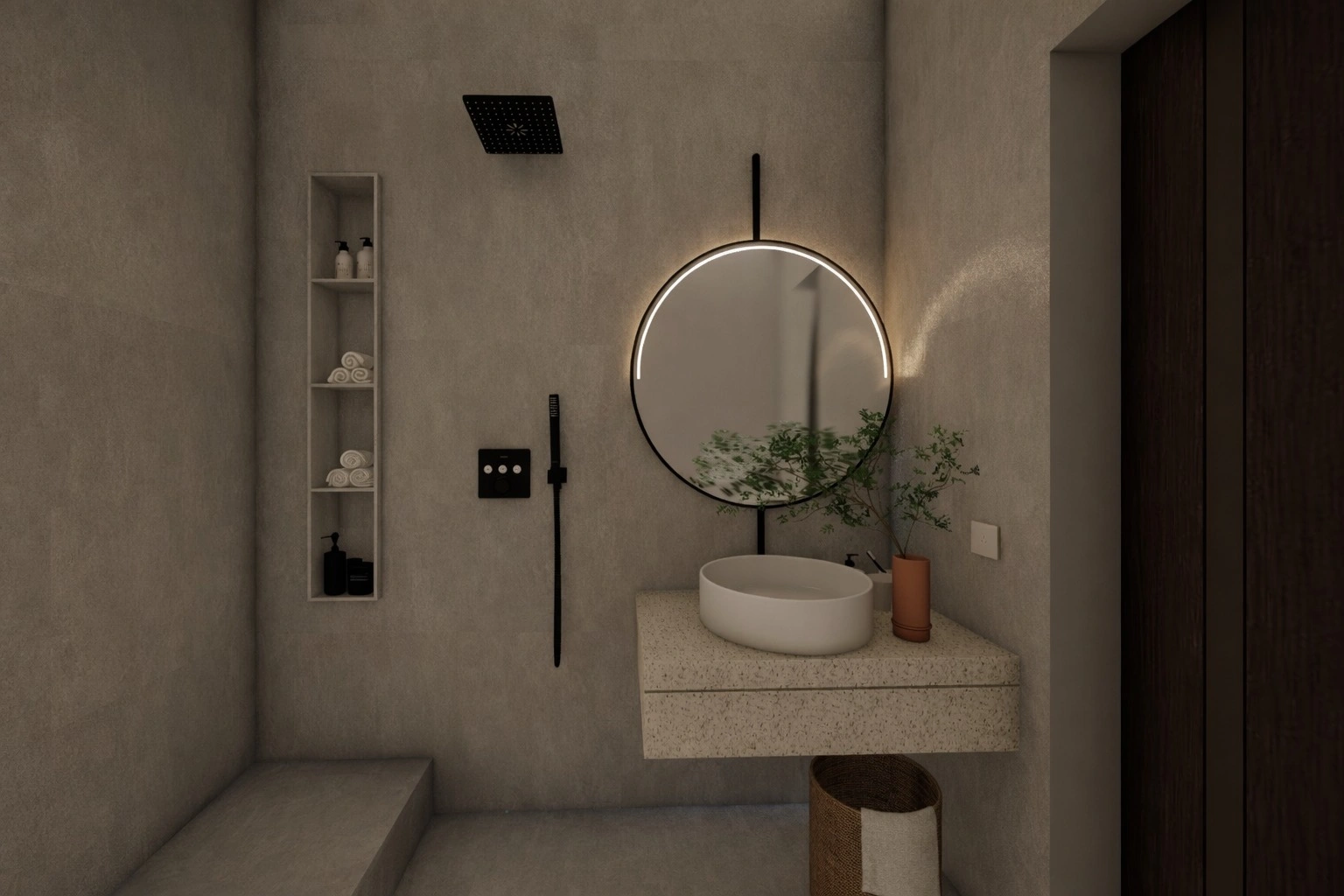 Client Name: Awais Ali Butt Location: Gulshan Colony, Gujranwala Project Type: Complete Washroom Renovation & Modern Makeover When Mr. Awais Ali Butt from Gulshan Colony, Gujranwala contacted us for a washroom renovation, his main concern was transforming an old, outdated and poorly lit bathroom into a modern, elegant, and highly functional space. As a team known for detailed architectural planning and creative naqsha solutions in Gujranwala, we accepted the challenge and delivered a stunning transformation. This project perfectly reflects why we are recognized as the Best Architect in Gujranwala and one of the Top Architect in Gujranwala for renovation and interior design projects. Before Renovation – Existing Washroom Condition From the before image, the washroom had several design and functionality issues: Old pink ceramic wall tiles with visible staining Small, basic pedestal wash basin Low-quality mirror with poor finishing Exposed plumbing lines Weak lighting and dull ambiance Water damage marks on lower wall area Poor storage and cluttered accessories The overall design lacked harmony, aesthetics, and proper architectural planning. The tile color combination made the space look outdated and visually congested. The pedestal basin occupied space inefficiently and offered no storage. Lighting was insufficient, making the washroom appear dark and cramped. The client wanted a complete transformation — not just cosmetic changes but a modern architectural redesign. Our Design Concept – Modern Minimalist Luxury For this washroom renovation in Gulshan Colony, our approach was: Modern + Minimalist + Functional + Elegant We completely redesigned the space with a clean architectural language. The new concept focused on: Neutral color palette Soft textured walls Floating vanity design Contemporary sanitary fittings Integrated lighting design Clutter-free aesthetics As experienced architects in Gujranwala, we believe washrooms should feel like personal spa spaces, not just utility areas. Wall & Surface Transformation We removed the old pink tiles and introduced: Soft grey-beige textured wall finish Seamless modern surface look Moisture-resistant materials The neutral tones create a calm and luxurious environment. This color scheme also enhances natural and artificial lighting reflection, making the washroom look spacious. Choosing the right materials is critical in washroom renovation projects in Gujranwala due to humidity and water exposure. We carefully selected finishes that are both durable and aesthetically premium. Floating Vanity & Basin Design One of the biggest transformations in this project was the replacement of the old pedestal basin with a floating vanity design. Features: Custom-designed floating countertop Round modern vessel basin Concealed plumbing Storage-friendly layout Clean under-space area The floating design makes the floor visually open, giving the illusion of more space — a very important technique in compact washrooms. The countertop texture adds sophistication and complements the neutral wall palette beautifully. This is a signature detail that reflects the creativity of a top architect in Gujranwala. Modern Round LED Mirror Instead of a basic rectangular mirror, we installed a round backlit LED mirror. Why Round? Softens the overall geometry Adds luxury hotel-like aesthetics Creates focal point in small space Enhances lighting evenly The integrated LED lighting gives: Soft glow effect Better face illumination Premium visual appeal Lighting plays a huge role in architectural detailing. As professional architects in Gujranwala, we ensure lighting is not just functional but emotional. Premium Black Fixtures To enhance contrast and add a modern touch, we used: Matte black shower head Black vertical shower set Black detailing elements Black fittings against neutral walls create a bold and contemporary appearance. This combination is trending in modern washroom design in Gujranwala and upscale housing societies. The shower head is designed for better water distribution and a luxurious bathing experience. Space Optimization Strategy Before renovation, the washroom felt tight and cluttered. We improved space perception by: Removing bulky pedestal structure Concealing pipes Introducing floating elements Using minimal accessories Maintaining clean vertical alignment Architectural planning is not just about beauty — it is about smart spatial management. This project showcases our expertise in maximizing small washroom spaces in residential homes across Gujranwala. Lighting Design Strategy The old washroom lacked proper illumination. We improved lighting through: LED backlit mirror Soft ambient reflection from textured walls Balanced shadow-free illumination Now the space feels: Warm Modern Premium Comfortable Lighting design is one of the most underrated aspects of renovation. As the best architect in Gujranwala, we pay detailed attention to such elements. Material Selection & Durability In washroom renovations, material selection is critical. We ensured: Water-resistant finishes Anti-moisture coatings Easy-to-clean surfaces Long-term durability This ensures the washroom remains elegant and damage-free for years. Client Satisfaction – Awais Ali Butt Mr. Awais Ali Butt wanted a complete makeover — and the transformation speaks for itself. From an outdated pink-tiled washroom to a modern, spa-like minimal space, this project is a strong example of our architectural capabilities in Gulshan Colony, Gujranwala. Client feedback emphasized: Professional planning High-quality execution Clean finishing Attention to detail Modern aesthetics Why This Project Reflects Top Architect in Gujranwala This renovation highlights: ✔ Smart space utilization ✔ Modern minimalist design ✔ Premium sanitary selection ✔ Advanced lighting integration ✔ Contemporary finish palette ✔ Clean execution Every detail reflects architectural expertise. In Gujranwala, especially in areas 